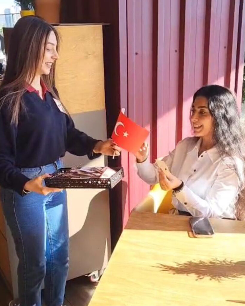 Bu anlamlı günde, misafirlerimize Türk bayrağı yaka rozetleri hediye ederek Cumhuriyetimizin değerlerini birlikte yaşatmanın mutluluğunu paylaştık.